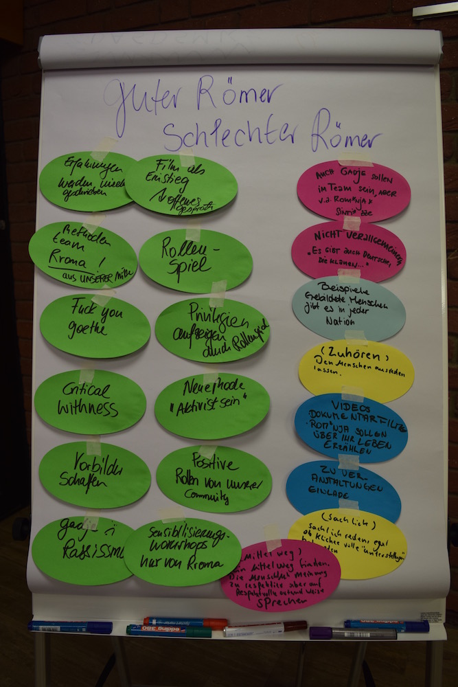 Ein wichtiges Thema des Treffens war die Planung der Bundesjugendkonferenz, die vom 30. September bis 3. Oktober in Freiburg stattfinden wird. Außerdem wurde das Theaterprojekt "Become Flüchtling" vorgestellt, das Mitte Februar in Berlin startet. Weiterhin erarbeiteten die jugendlichen Teilnehmer*innen Themen und methodische Ansätze für die Entwicklung der Sensibilisierungs-Methoden. Diese sollen im Verlauf des Jahres entwickelt werden und zielen darauf ab, Nicht-Rom*nja und Nicht-Sinti*zze für den spezifischen Rassismus gegen Sinti*zze und Rom*nja zu sensibilisieren. Ein weiterer Bericht über das Treffen von Silas Kropf, der seit Beginn des Projektes in der Lenkungsgruppe mitarbeitet, ist HIER verlinkt.